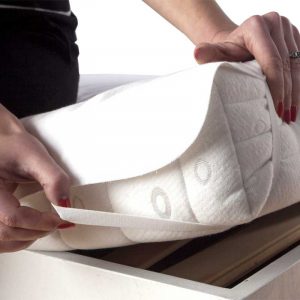 - Elastične trake s donje strane na oba dna sprječavaju klizanje i iskakanje zaštite s madraca